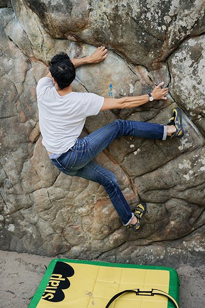 Bouldering: With no rope or harness, bouldering is generally practiced over shorter routes of 6 to 12 feet, over large rocks, for example. If you fall, crash pads laid out on the floor are there to soften the impact. This is a great activity to do with friends, to push your limits in a safe environment.Benefits: